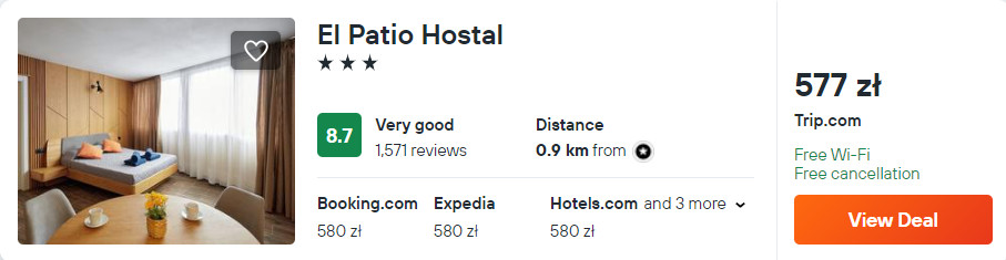 W Alicante rekomenduję ci zakwaterowanie w 3* obiekcie El Patio Hostal. Każdy pokój wyposażony jest w klimatyzację oraz telewizor LCD. W prywatnej łazience jest prysznic i suszarka do włosów. Na terenie całego obiektu zapewniony będziesz mieć dostęp do sieci WiFi.