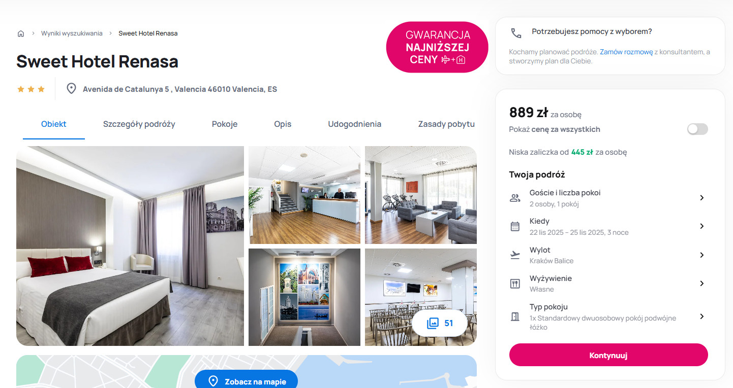 Sweet Hotel Renasa znajduje zaledwie kilka minut pieszo od stacji metra Facultats i przystanku autobusowego, co zapewnia świetne połączenia z centrum i plażą. W pobliżu znajdziesz spokojne kawiarnie i lokale tapas (Tasca Ángel, El Rincón del Falla czy La Pilareta) – idealne na tani posiłek. Obiekt oferuje nowoczesne, przestronne pokoje z klimatyzacją, bezpłatnym Wi-Fi, restaurację, bar, obsługę pokojową, taras i całodobową recepcję.