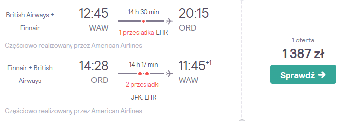 (Aktualizacja) Jeszcze niższe ceny! Dobra okazja na niedrogie loty do położonego nad jeziorem Michigan Wietrznego Miasta. Do USA polecicie na pokładach samolotów Finnair oraz British Airways.