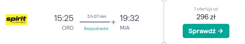 Z Wietrznego Miasta do Słonecznego Stanu polecicie bezpośrednio na pokładzie samolotu linii Spirit Airlines. Na wycieczkę udacie się z małym bagażem podręcznym. Za możliwość zabrania ze sobą dwóch bagaży podręcznych, będziecie musieli zapłacić ok. 25 USD/ za lot krajowy w USA.