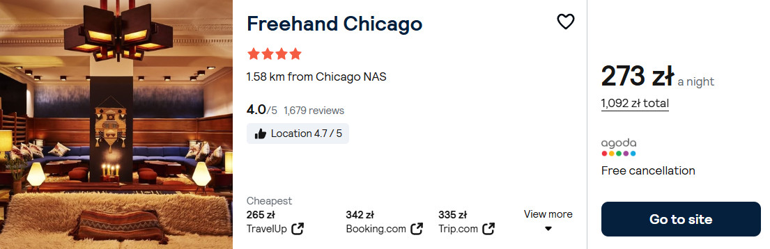 Natomiast Hilton Garen Inn to świetna lokalizacja blisko głównych atrakcji Chicago, czyste pokoje i solidny standard za rozsądną cenę. Dobry wybór, jeśli chcesz komfortowego noclegu z basenem i siłownią w centrum miasta.