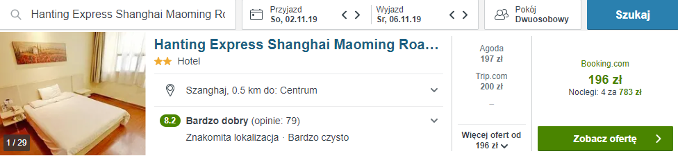 Obiekt Hanting Express Shanghai Maoming Road to z koli propozycja noclegów w Szanghaju. W jego pobliżu znajduje się stacja metra Nanjing West Road (linia 2). Pokoje w hotelu są przestronne i wyposażone w udogodnienia jak telewizor, czajnik czy WiFi. W prywatnej łazience znajdziecie prysznic.