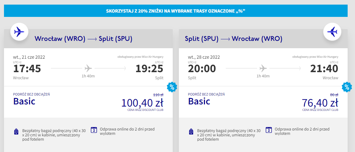 Linia lotnicza: Wizz Air, cena dla posiadaczy WDC