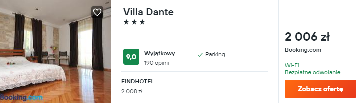 W Chorwacji wybrałem dla was noclegi w znakomicie ocenianym pensjonacie Villa Dante. Znajduje się on tylko 100 m od brzegu morza oraz najbliższej plaży. Na miejscu do waszej dyspozycji będą stylowe, elegancko urządzone pokoje.