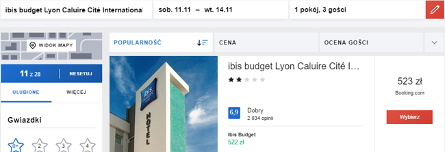 - Noclegi w hotelu ibis budget Lyon Caluire Cité Internationale za 522 PLN/3 osoby (174 PLN/osoba)