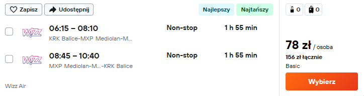 Do Włoch wybierzesz się w terminie 12 – 14 stycznia. Czeka cię bezpośredni lot z Krakowa na główne lotnisko Mediolan (Malpensa). Tym razem bilety w najniższej cenie w Wizz Air dostępne są dla wszystkich – nie potrzebujesz klubów zniżkowych.