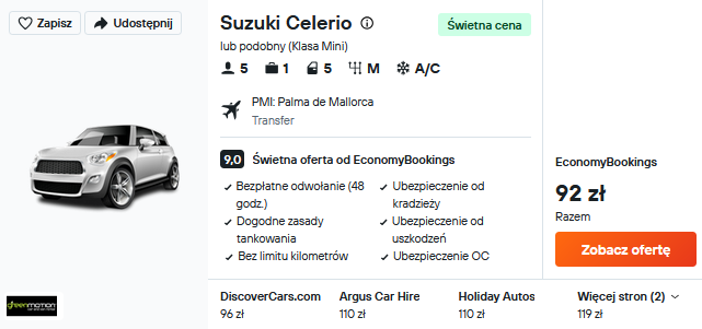 Samochód od 92 PLN/2 osoby/pobyt