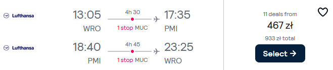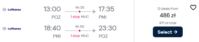 Do Hiszpanii udasz się w terminie 28 listopada-2 grudnia (czwartek-poniedziałek) z lotnisk we Wrocławiu, Rzeszowie i Poznaniu. Na Majorkę polecisz linią Lufthansa z przesiadką w Monachium. W cenę biletu wliczony został bagaż podręczny oraz przedmiot osobisty.