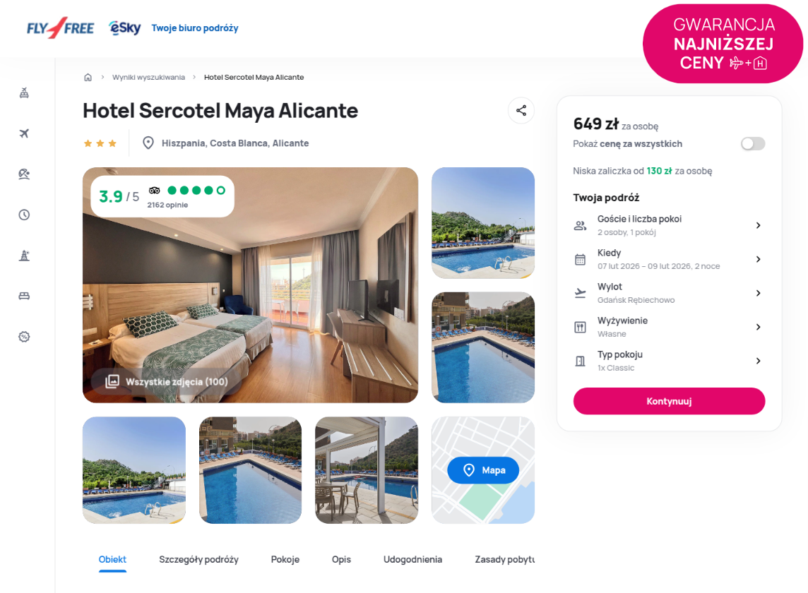 Do Alicante polecisz z Gdańska w terminie 7-9 lutego (sobota-poniedziałek). W obie strony podróżować będziesz linią Ryanair z bagażem podręcznym wliczonym w cenę biletu.