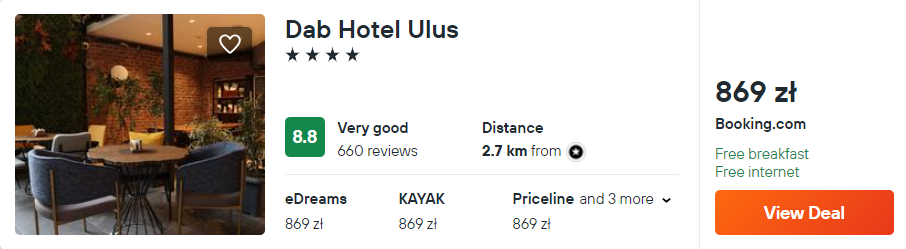 Na miejscu zatrzymasz się w 4* Dab Hotel Ulus, który znajduje się w sąsiedztwie zamku w Ankarze. Z lotniska w okolice miejsca noclegowego dojedziesz komunikacją publiczną.