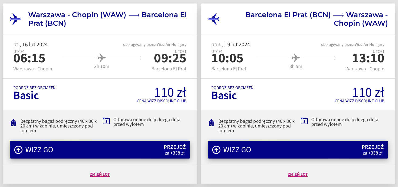 Do Hiszpanii udasz się z Warszawy w dniach 16-19 lutego (piątek-poniedziałek). W obie strony polecisz na pokładzie samolotów linii Wizz Air. Bilety w najniższej cenie dostępne są dla członków Wizz Discount Club. Chętni na loty bez WDC zapłacą nieco więcej.