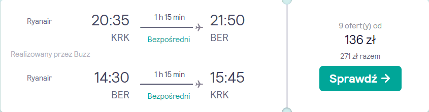 Do Berlina udacie się w terminie 18-20 listopada (piątek-niedziela) z krakowskiego lotniska w Balicach. W obie strony polecicie na pokładach samolotów linii Ryanair z wliczonym małym bagażem podręcznym.