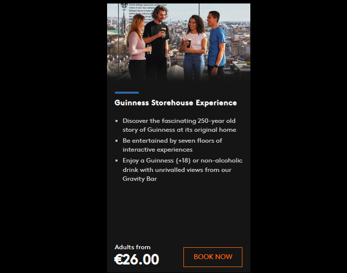 Pełnoletnim gościom proponuję skorzystać z okazji i odwiedzić Guinness Storehouse, by poznać tajniki produkcji oraz ciekawostki na temat jednego z najbardziej charakterystycznych piw na świecie. Ceny biletów dla osób dorosłych zaczynają się od 26 EUR (ok 123 PLN), a zarezerwujesz je na oficjalnej stronie browaru.