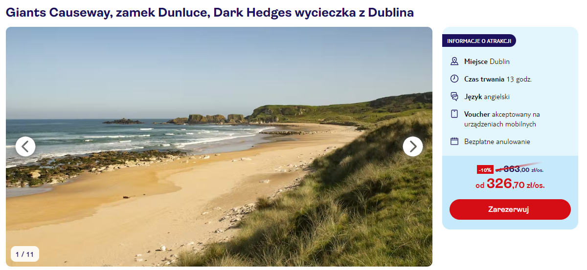 Chcesz zwiedzić jeszcze więcej? Zarezerwuj wycieczkę, w czasie której będzie okazja zobaczyć Giants Causeway, zamek Dunluce oraz Dark Hedges.