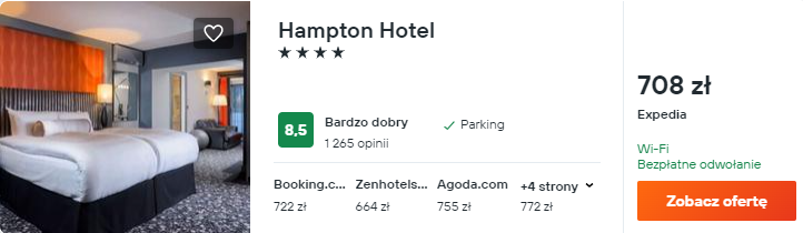 Wolisz propozycję z wyższej półki? Rozważ zatem pobyt w bardzo dobrym 4* hotelu Hampton.