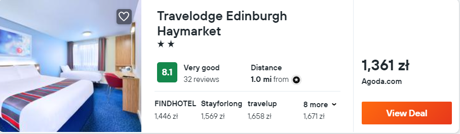 Na miejscu zakwaterowani będziecie w 3* hotelu Travelodge Haymarket, który od ścisłego centrum miasta oddalony jest o jedyne 2 km. Z lotniska w okolice miejsca noclegowego (przystanek Haymarket) dojedziecie tramwajem za 6,5 GBP.