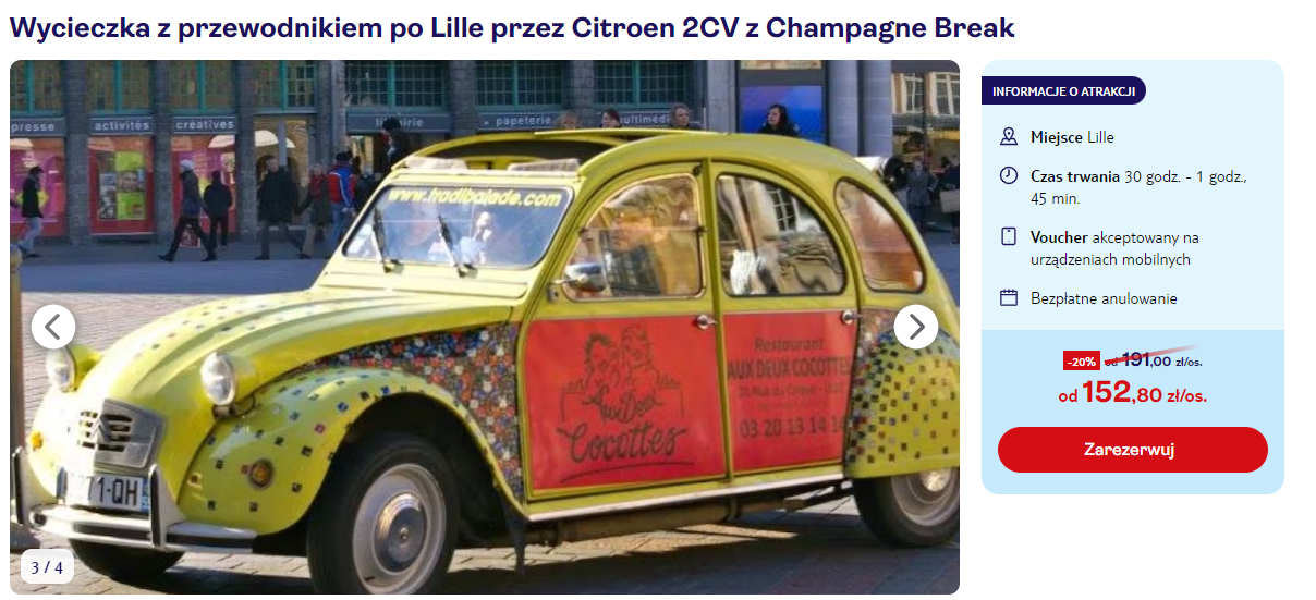 Poczuj prawdziwy francuski klimat w trakcie wycieczki z przewodnikiem po Lille w charakterystycznym Citroenie 2CV.