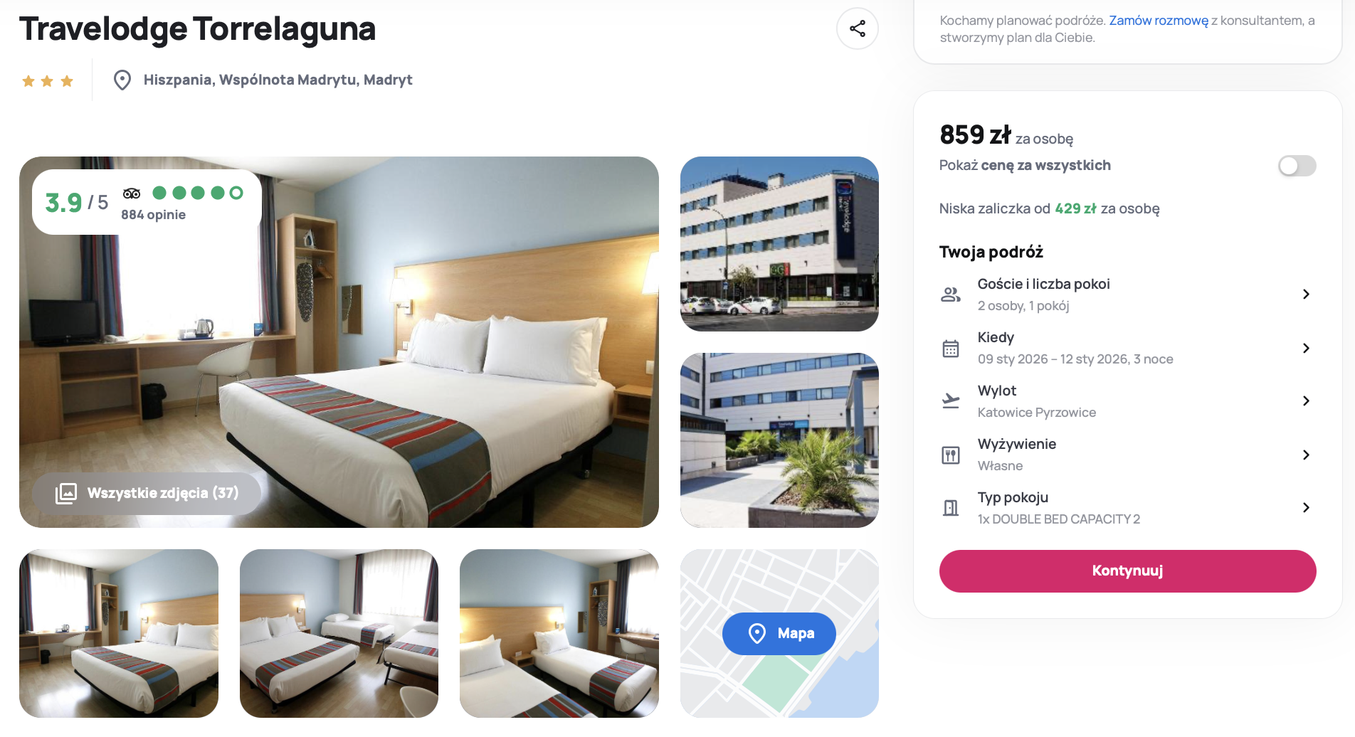 🛏️ Zakwaterowanie: Travelodge Torrelaguna