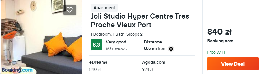 Za loty w obie strony oraz zakwaterowanie w Marsylii zapłacisz 648 PLN za osobę, przy 2 podróżnych śpiących w jednym pokoju.