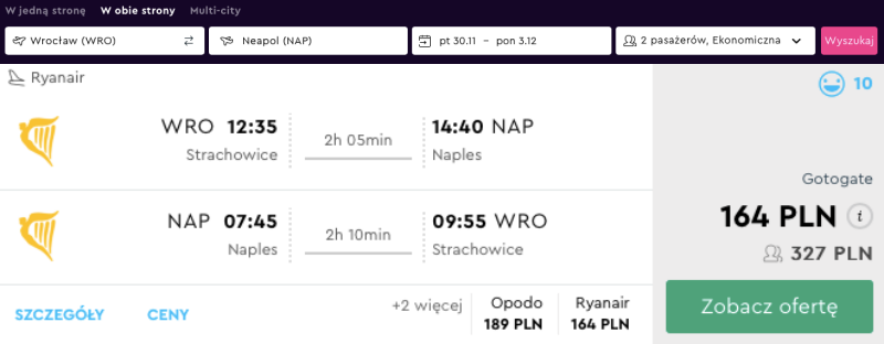 Loty z Wrocławia do Neapolu (30 listopada - 3 grudnia) za 327 PLN / 2 osoby (164 PLN / osoba)