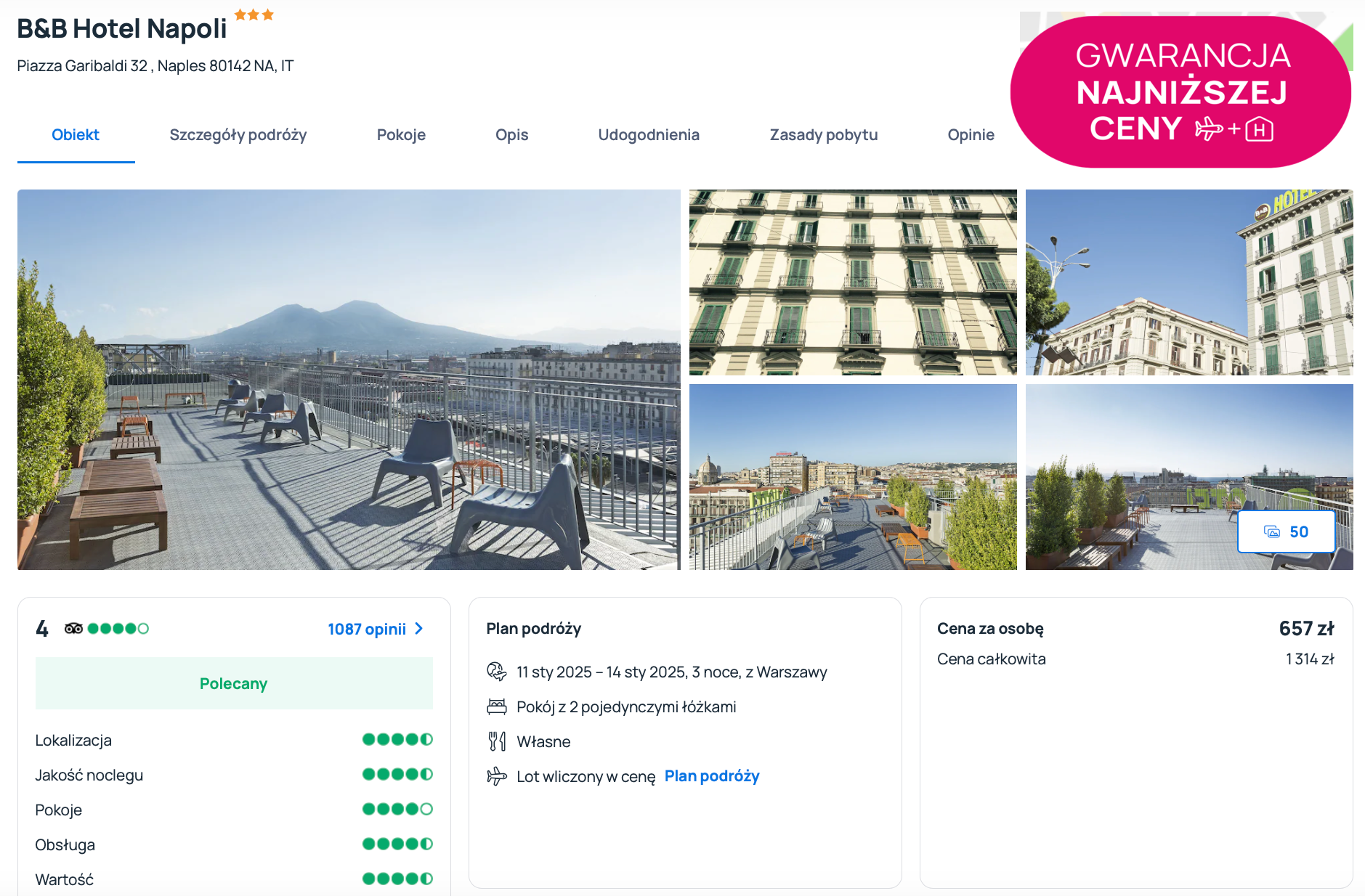 Do Włoch wybierzesz się w terminie 11-14 stycznia (sobota-wtorek). Czeka cię bezpośredni lot z Warszawy do Neapolu linią Wizz Air z bagażem podręcznym.
