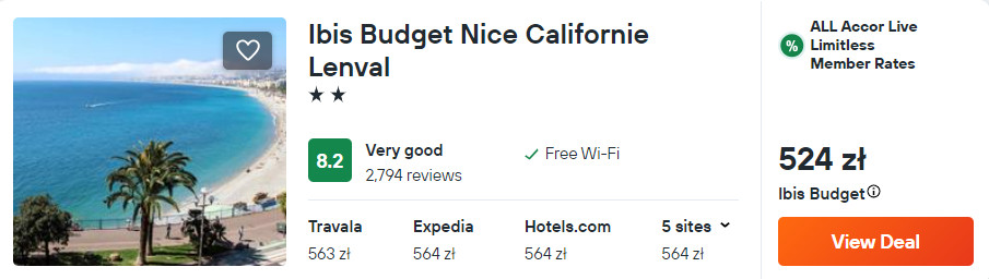 We Francji zatrzymasz się w hotelu Ibis Budget Nice Californie Lenval, który znajduje się tuż przy Promenadzie Anglików. Z lotniska w okolice miejsca noclegowego (przystanek Lenval Hôpital) dojedziesz tramwajem linii L2.