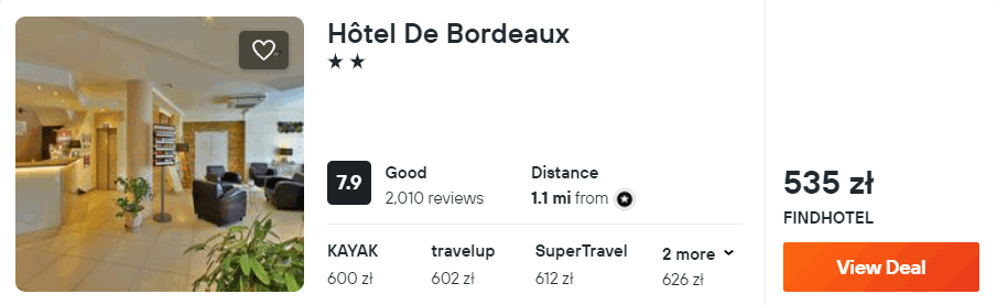 W stolicy Francji zatrzymasz się w hotelu De Bordeaux, który znajduje się nieopodal dworca Gare de l’Est. Z lotniska (Charles de Gaulle) w okolice miejsca noclegowego dojedziesz komunikacją publiczną. W tym wątku na forum znajdziesz szczegółowe informacje, jak dostać się z portu lotniczego do centrum Paryża.