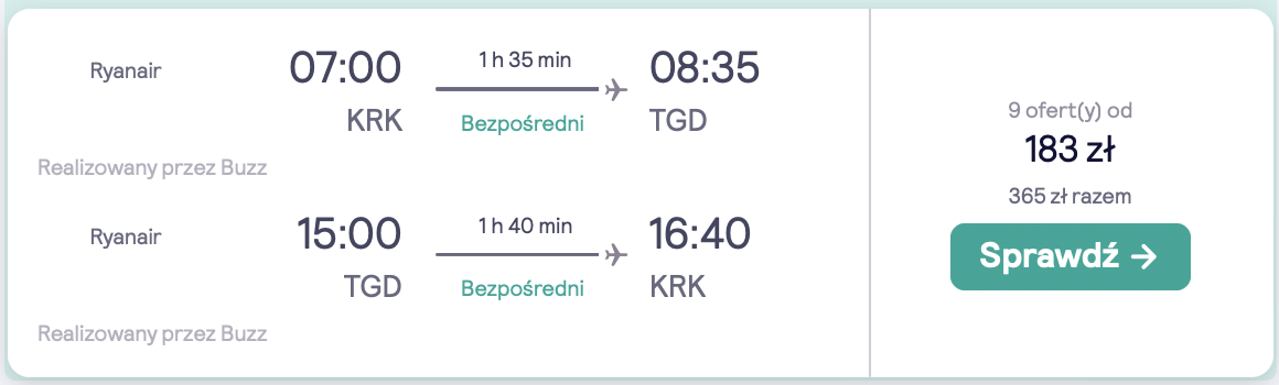 Na Bałkany udacie się w terminie 9-11 grudnia (piątek-niedziela) z portu lotniczego Kraków-Balice. W obie strony polecicie bezpośrednie na pokładach samolotów linii Ryanair z wliczonym małym bagażem podręcznym.