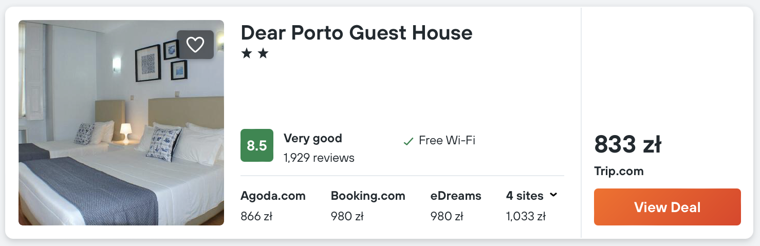 Za pakiet lotów oraz noclegów zapłacisz 1107 PLN za osobę, pod warunkiem że będziesz podróżować w parze i zatrzymacie się w tym samym pokoju.
