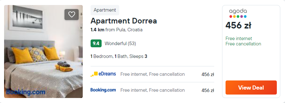 W Chorwacji zatrzymasz się w obiekcie Apartment Dorrea, który znajduje się w centrum miasta, a od Koloseum oddalony jest on o 800 metrów. Z lotniska w okolice miejsca noclegowego dojedziesz taksówką za ok. 70 PLN lub komunikacją miejską. Więcej informacji na ten temat znajdziesz w tym wątku na forum.