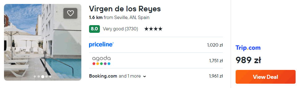 Na Sewilli zatrzymasz się w 4* hotelu Virgen de los Reyes, który znajduje się w odległości 15 minut spacerem od zabytkowego centrum miasta. Z lotniska w okolice miejsca noclegowego dojedziesz komunikacją publiczną.