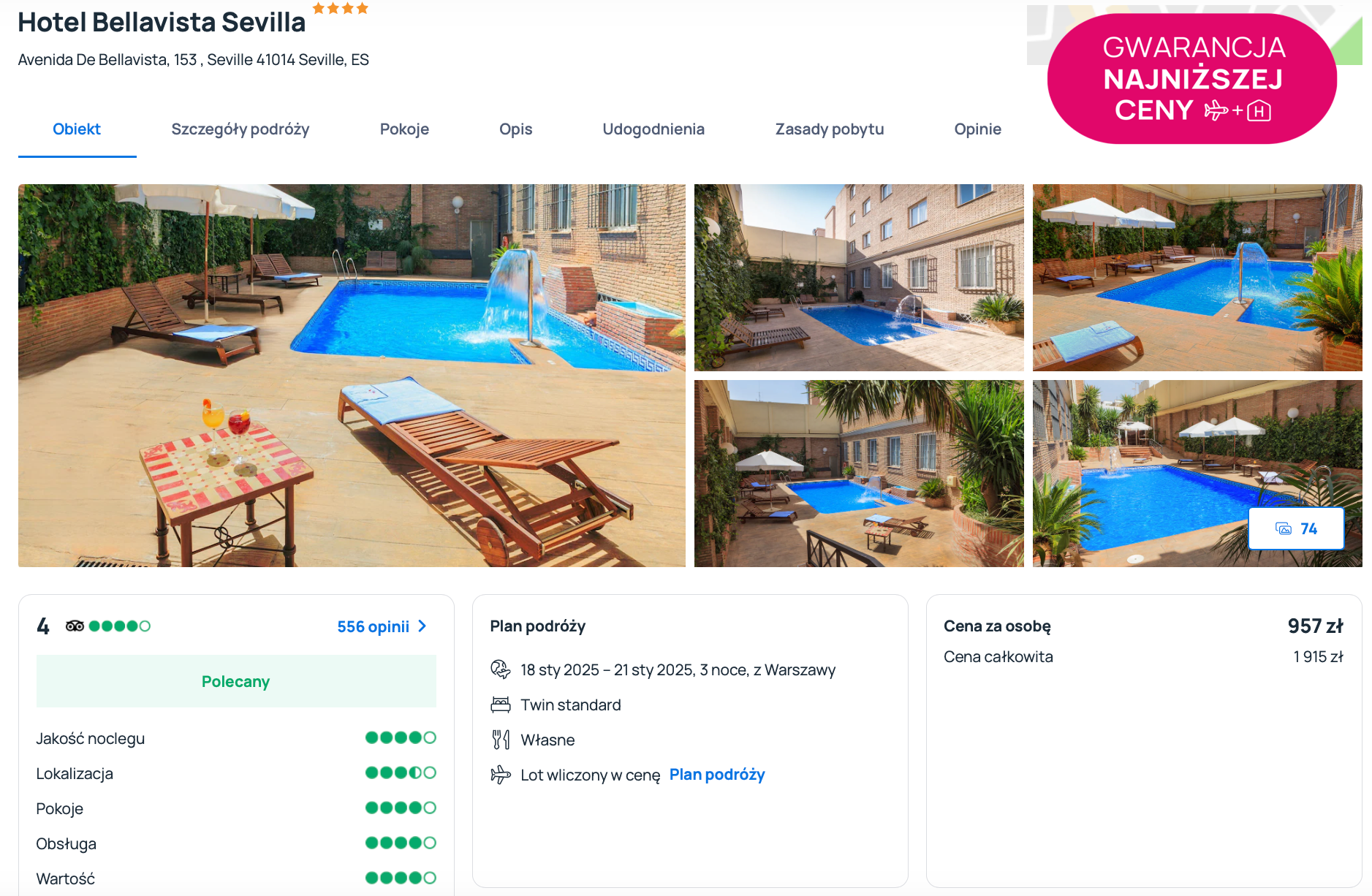 W stolicy Andaluzji zatrzymasz się w 4* hotelu Bellavista Sevilla, który położony jest niedaleko stacji, skąd szybko dojedziesz do centrum miasta. Każdy pokój wyposażony jest w WiFi, minibar i prywatną łazienkę.