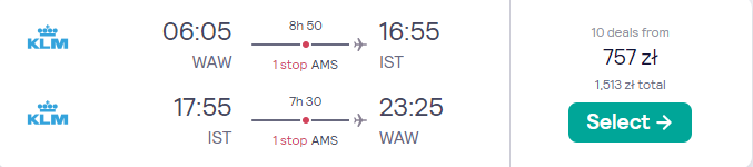 Do Turcji polecisz w terminie 22 – 27 lutego. Czeka cię podróż z Warszawy do Stambułu, realizowana na pokładzie samolotu linii KLM. Po drodze zaplanowano bezpieczne, gwarantowane przez przewoźnika przesiadki w Amsterdamie.