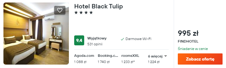 Zakwaterowanie: 4* hotel ze śniadaniam