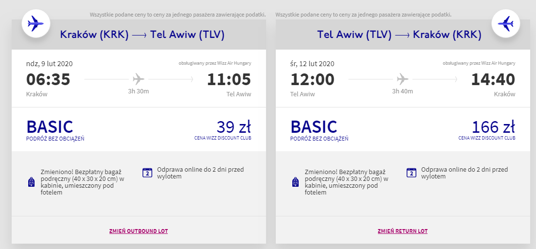 Przeloty realizowane są na pokładzie węgierskiej linii lotniczej Wizz Air. Aby uzyskać taką cenę, musisz być członkiem Wizz Discount Club.