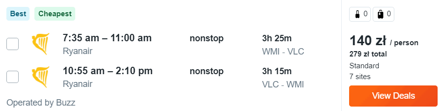 Na wycieczkę do Walencji wyruszycie 13 stycznia z warszawskiego lotniska w Modlinie, a do Polski wrócicie po 3 dniach spędzonych w Hiszpanii (16.1). W obie strony podróżować będziecie bezpośrednio na pokładach samolotów linii Ryanair z wliczonym małym bagażem podręcznym. Za bilety na loty od czwartku do niedzieli zapłacicie 140 PLN/os.