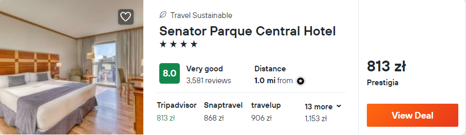 Na miejscu zakwaterowani będziecie w 4* hotelu Senator Parque Central, który znajduje się nieopodal centrum Walencji. Z lotniska w okolice miejsca noclegowego (stacja Xàtiva) dojedziecie tramwajem nr 5 za 1,04 EUR lub wypożyczonym samochodem – szczegóły poniżej.