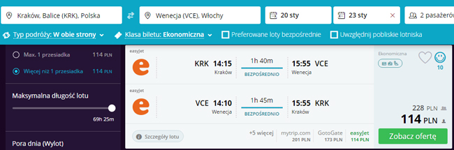 - Loty z Krakowa do Wenecji (20 – 23 stycznia) za 228 PLN/2 osoby (114 PLN/osoba)