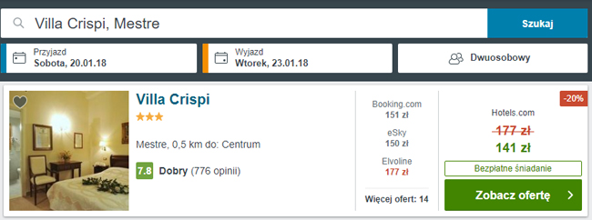 - Noclegi w Villa Crispi za 423 PLN/2 osoby/3 noce (211,5 PLN/osoba)