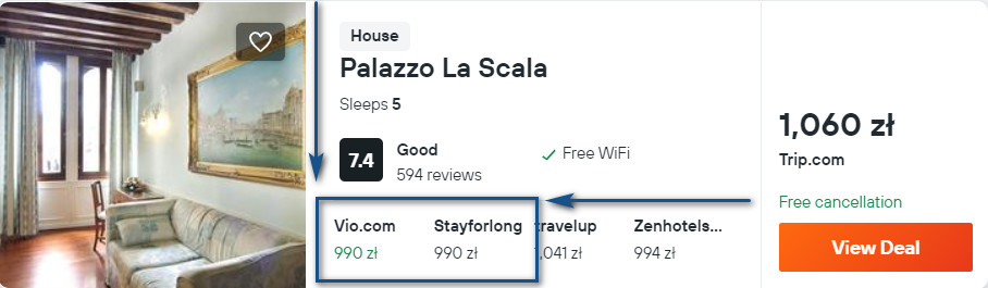 W Wenecji zatrzymasz się w dobrym pensjonacie Palazzo La Scala, który od placu św. Marka oddalony jest o 5 minut spacerem. Z lotniska Marco Polo w okolice miejsca noclegowego dostaniesz się promem linia A (przystań Rialto „B”) lub linia B (przystań Ospedale).