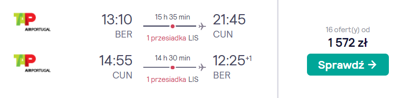 Głównym elementem (tzw. oblotówki) po Meksyku jest międzykontynentalny przelot z portu lotniczego Berlin Brandenburg do Cancun i z powrotem. Trasę pokonacie na pokładzie samolotu linii TAP Air Portugal, a lecąc w obie strony, czekać was będą wygodne przesiadki na lotnisku w Lizbonie.