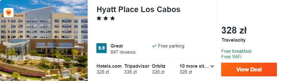 Dowiedzcie się więcej o tym hoteluW stanie Kalifornia Dolna Południowa rekomenduję wam pobyt w 3* Hyatt Place Los Cabos, który znajduje się w odległości ok. 200 metrów od lokalnej plaży. Na miejscu czekają na was komfortowo urządzone pokoje, codzienne śniadania oraz dostęp do tarasu słonecznego, odkrytego basenu i sieci WiFi.