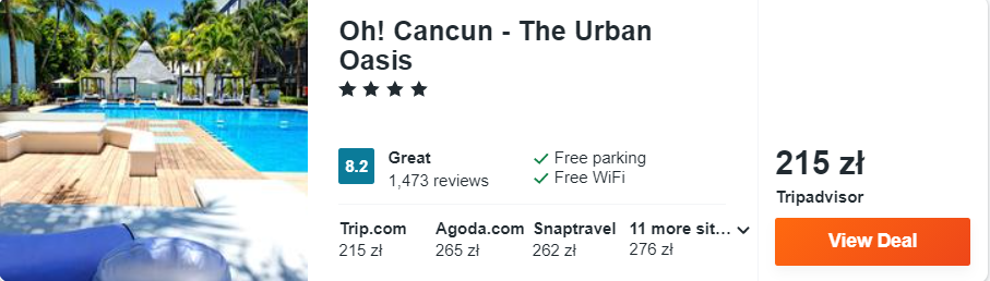 W Cancun rekomenduję wam noclegi w 4* hotelu Oh! Cancun – The Urban Oasis, który znajduje się w spokojnej części miasta. W ciągu dnia będziecie mogli odpocząć na tarasie słonecznym lub ochłodzić się w basenie.