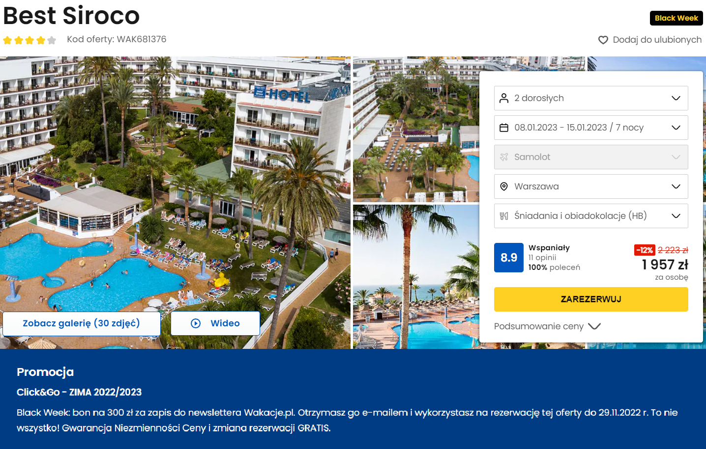 Do Hiszpanii udasz się w terminie 8 – 15 stycznia 2023 r. z 3 polskich miast. W obie strony polecisz na pokładach samolotów linii Wizz Air z wliczonym małym bagażem podręcznym.