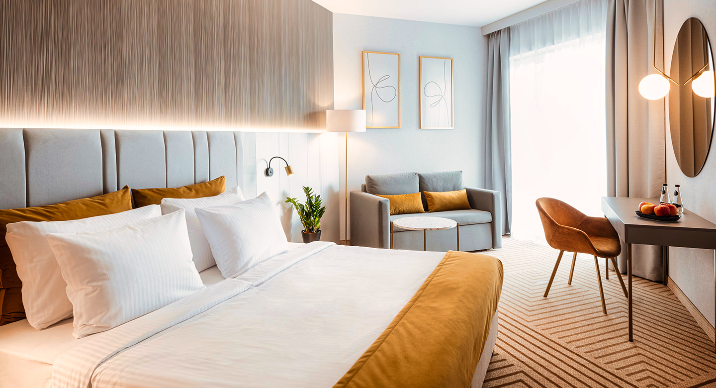 W każdym pokoju znajdziecie wygodne łóżko, telewizor z płaskim ekranem, zestaw do parzenia kawy/herbaty, sejf oraz telefon. W każdym z nich mieści się również prywatna łazienka z kabiną prysznicową lub wanną, suszarką do włosów oraz kosmetykami.