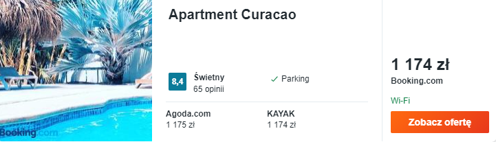 Wybrałem dla was noclegi w Apartment Curacao – będzie to wypoczynek w prawdziwie karaibskim stylu: pastelowe kolory oraz dostęp do odkrytego basenu wprowadzą was we właściwy nastrój, a klimatyzowane studio z prywatną łazienką oraz aneksem kuchennym będzie dobrym miejscem na wypoczynek po dniu pełnym atrakcji.