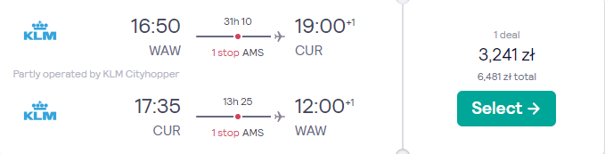 Na Karaiby udacie się w dogodnym terminie zahaczającym o dodatkowy dzień wolnego – Narodowy Dzień Niepodległości. Zaplanowane loty odbędą się 5 – 12 listopada, a jako miejsce początkowe podróży możecie wybrać Gdańsk, Kraków lub Warszawę. Po drodze zaplanowano bezpieczne przesiadki w Amsterdamie, a w cenę biletów wliczono wyłącznie bagaż podręczny.