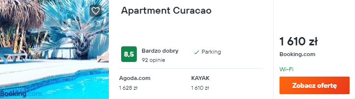Wybrałem dla was noclegi w bardzo dobrze ocenianym pensjonacie Apartment Curacao. Znajduje się on niedaleko centrum Willemstadt i będzie świetną bazą wypadową dla waszych wycieczek po wyspie.