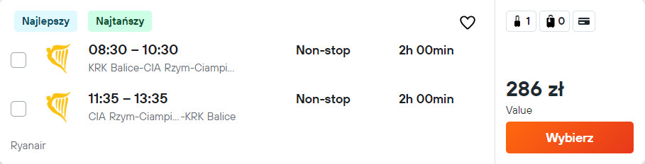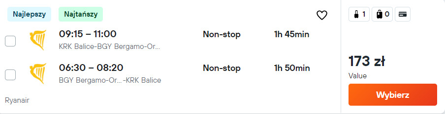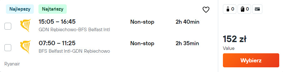 Na każdej trasie podróżować będziesz na pokładzie samolotu linii Ryanair. Bez dodatkowych kosztów na wycieczkę udasz się z małym bagażem podręcznym.