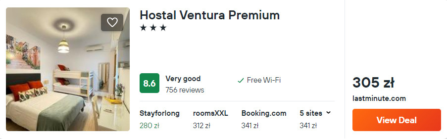 W Alicante rekomenduję ci pobyt w 3* obiekcie Hostal Ventura Premium, który od plaży Postiguet oddalony jest o 400 metrów. Każdy pokój wyposażony jest w klimatyzację, telewizor LCD, lodówkę oraz czajnik elektryczny. W łazience jest prysznic i suszarka do włosów. Na terenie całego obiektu zapewniony będziesz mieć dostęp do sieci WiFi.